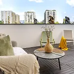Diese Unterkünfte bietet einen Balkon, einen Ankleidebereich und eine Sitzecke und Annehmlichkeiten wie eine Klimaanlage. Das Terra Luxe Residence verfügt außerdem über 1 Bad mit einer Badewanne und einer Dusche. Ein Haartrockner, ein Wäschetrockner und Handtücher sind ebenfalls vorhanden.